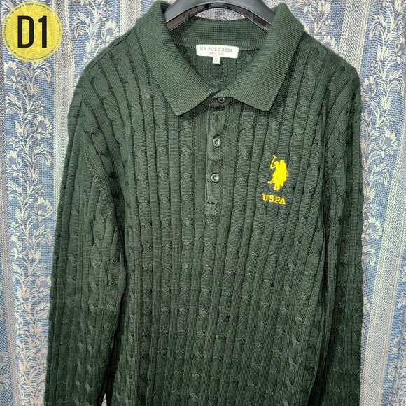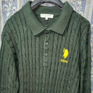 Dark green U.S. Polo Assn. long-sleeve knit polo shirt