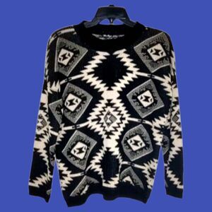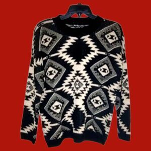 Retro Geometric Soft Tan & Black Sz MED Vintage Pullover Light Sweater The Rage
