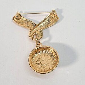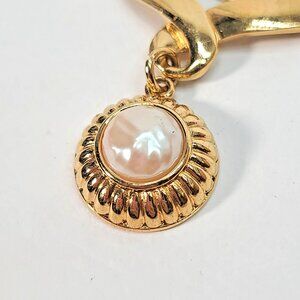 Retro Givenchy Gold-Tone Bow Brooch Pin faux dangle pearl, MCM designer 80s 90s