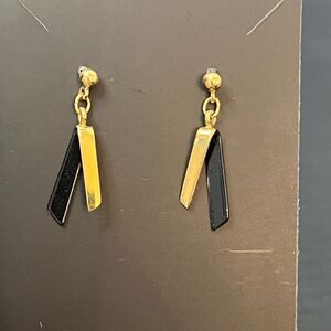 Vintage gold tone and black metal dangle earrings.