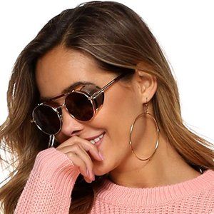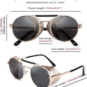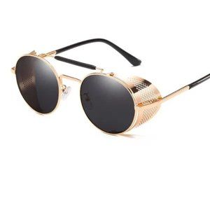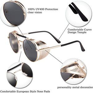 Retro Gothic Steampunk Sunglasses Black, Gold Polarized Metal Frame Glasses
