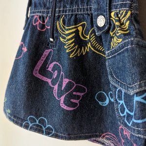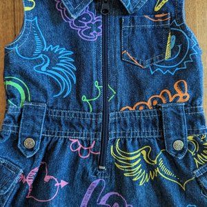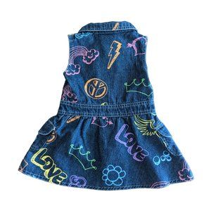Retro Graffiti Print Dress Baby Girl 6-9 Months Mid-Weight Dark Wash Denim