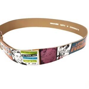 Quirky belt featuring 1950s / 1960s graphics. Made of plastic. Small bend on the inside (see photo) - no other flaws. Approximate measurements: 38.5" length.