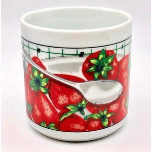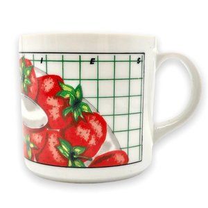 Strawberry berries coffee tea hot cocoa mug cup drinking drinkware kitchen dining mug mugs spoon retro vintage design checkers red white green Read Less