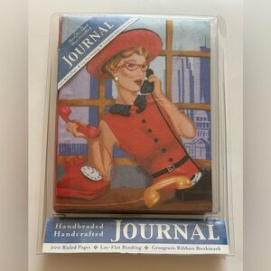Retro Hand Beaded Cloth Journal Rotary Phone Women Red Hat New 200 Ruled Pages