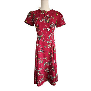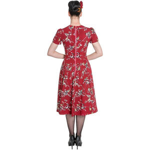 Retro Hell Bunny Vixen Landgirl 40s Birdy Dress Fit And Flare A Line Red Small