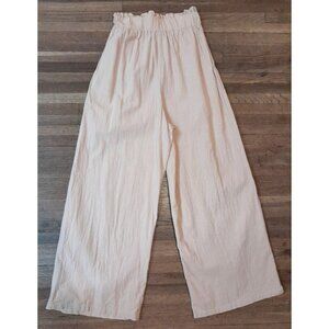 Retro High Rise Wide Leg Paper Bag Waist Pants Tan Size S