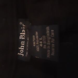 by John Blair menswear line. Black with geometrical whites stitching on back pockets , inspired by the double knit Pant designs of the 1960s and 1970s. the size is 44L . can definitely be unisex. 32" inseam. look very good pre-owned condition. no holes or stains. pet friendly non smoking home