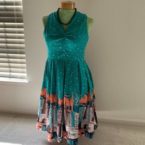 Adorable little fit and flare rockabilly dress. Perfect on it's own or tricked out with a petticoat and some peeptoes. It has fabulous pockets and is super comfortable.