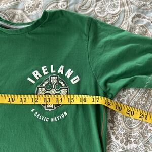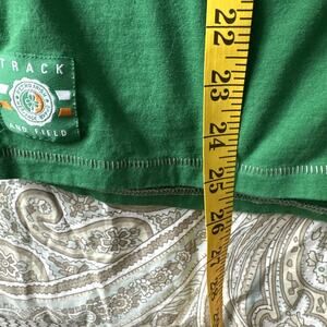 This Retro Irish unisex t-shirt in green features an Ireland patch design, perfect for St. Patrick's Day. Made of 100% cotton, it has a small size (refer to measurements) and a retro Celtic Nation Track & Field theme. This shirt is from Ireland, embodying a vintage Irish style.