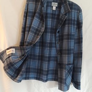 Retro Pendleton wool plaid jacket. Lightweight, no lining with button cuffs. Excellent condition, no holes, tears or rips. Looks great with blue jeans but also looks good with dress slacks.