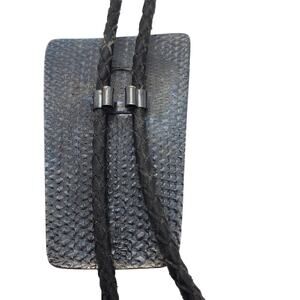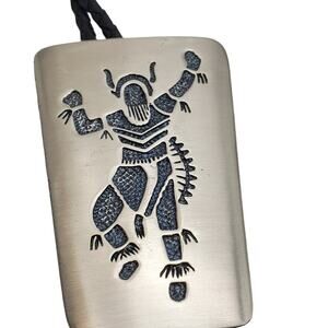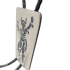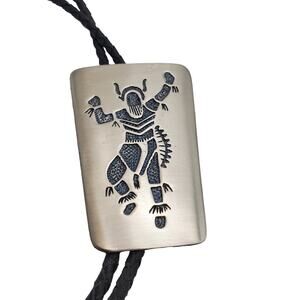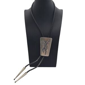 Retro Kachina Silver Tone Bolo Tie Black Leather SW Tie Lariat Dancing Figural