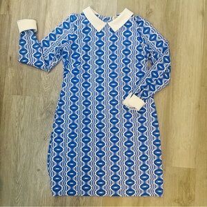 Retro Katherine Way 60s Style Shift Dress Large Geometric AOP 3/4 Sleeve Stretch #retro #coastal #modfashion #bohochic