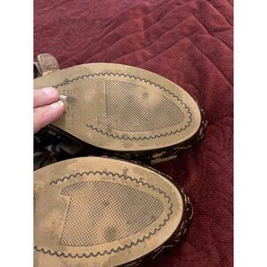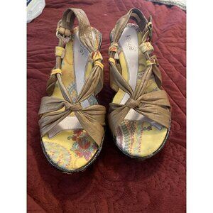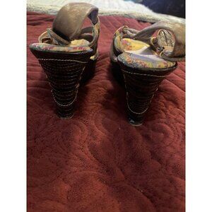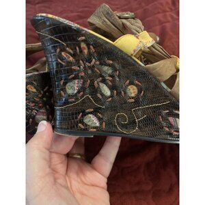 Chic Kenzie Y2K hippie women's wedge sandals, size 8M, with a unique floral, cutout, and embroidery design. Made from a comfortable mix of leather and man-made material. Perfect for casual wear or special occasions. Wedge platform 70’s