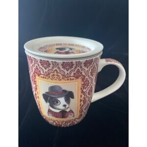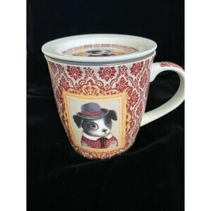 Retro Kitsch Puppy Top Hat Ascot Monocle Porcelain Tea Cup Strainer Lid by Efya