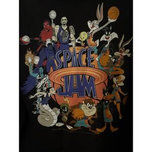 Get ready to slam dunk your style with this awesome, pre-owned Looney Tunes Space Jam hoodie! In excellent used condition, this black hoodie features the iconic Goon Squad/Tune Squad design. Black is not faded. Perfect for any Looney Tunes or Space Jam fan, this hoodie is a must-have addition to your wardrobe.