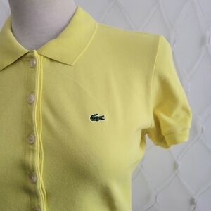 Retro Lacoste Women's Yellow Polo Shirt • Size Small (44)
