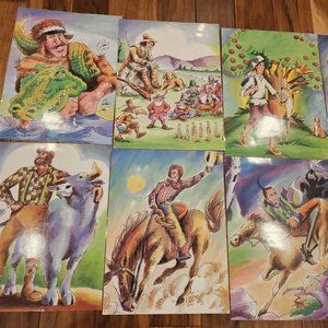 Retro Laminated Folk Tales Men Legend Wall Art Laminated Lot Of 8 12 x 16 Decor