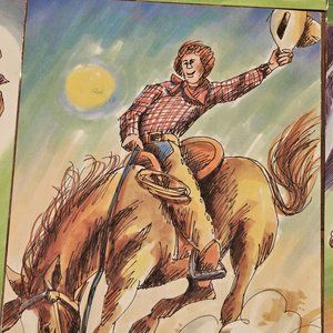 Vibrant colorful lmainated art of legendary men in American Folk Tal history