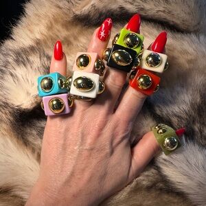 This is a listing for a artisan handmade retro style lavender resin composite with gold chrome bubble statement ring.