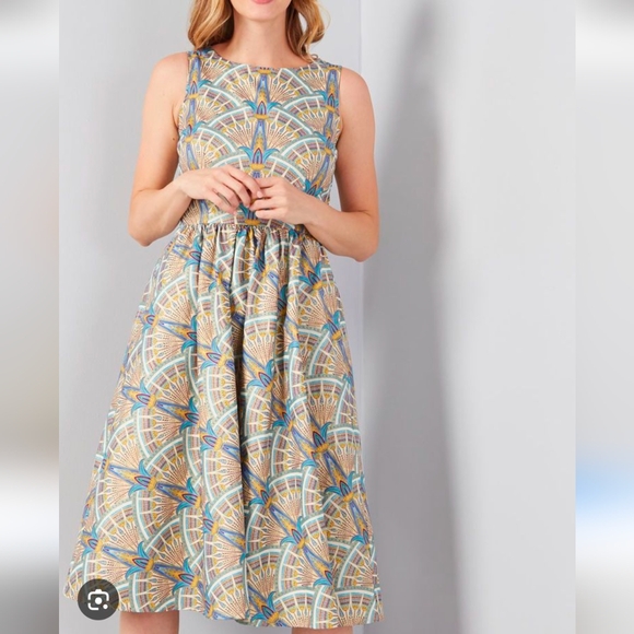 Retro Licious Cotton Geometric Pattern Fitflare A Line Midi Vintage Dress Medium