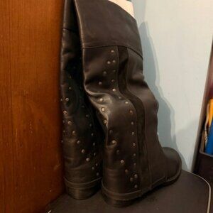 Retro Lola Studded Tall Leather Boots (Knee High)