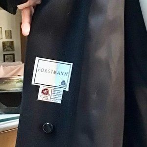 Black in color. Velveteen collar. No size is listed but fits me like a size 12. This has been kept in a cedar closet. Like new condition. No stains, holes, or any defect. A very retro look and really cute on. Feel free to ask questions.