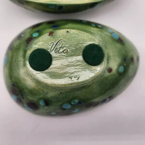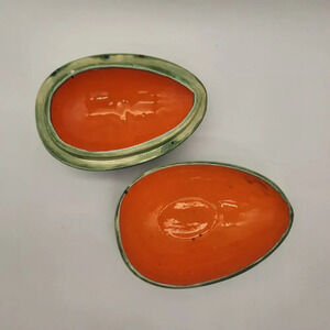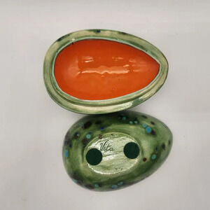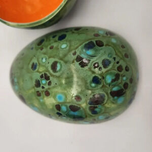 Retro MCM Green Crystaltex Ceramic Egg Trinket Box Orange Interior Signed Vita