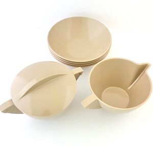 Retro MELMAC Mallo-Ware Melamie Creamer & Sugar with 4 Mallo-Belle Fruit Dishes