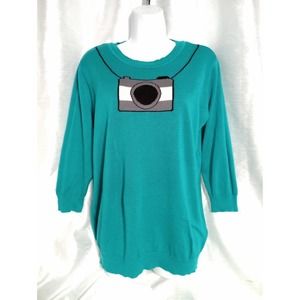Retro MODCLOTH blue green teal camera Sweater photography 3/4 sleeve
