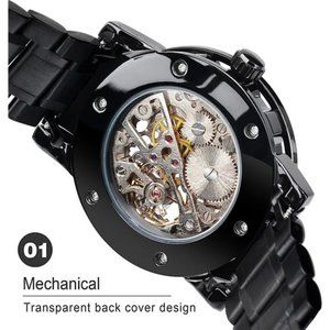 🧿⌚【3D Flower Engraving Dial】: The dial adopts precision laser engraving 3D technology and unique flower heart engraving patterns to make the watch shine at all times.This skeleton watch with a transparent lower cover, you can see clearly the movement of the watch movement, making you unique in any occasion.