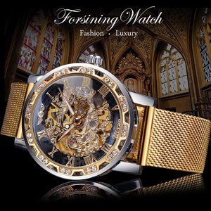 🧿⌚【Luxury Retro Mechanical Watch】: High-quality mechanical hollow watch, ancient Roman numeral dial with selected South African diamonds, stainless steel strap, full retro style, giving you the ultimate luxury experience.