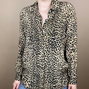 Retro Medium Flowy Loose Leopard Print Button Up Top Satiny Date Night Sexy