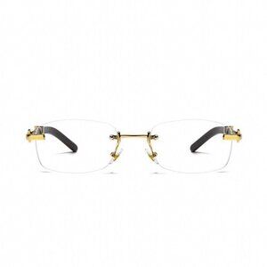 Vintage Square Small Retro Rimless Clear Lens Gold Frame Hip Hop Sunglasses Rectangle Men Women Frameless 90’s Buffs Shades Woodgrain Arm Frameless Eye Glasses Fashion Clear Tinted Glasses.