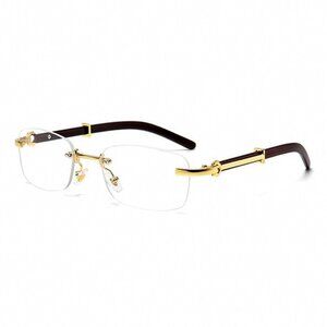 Retro Men's Gold Frame Elegant Rectangle Clear Lens Hip Hop Woodgrain Glasses