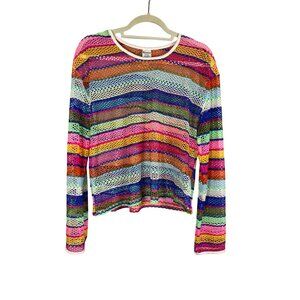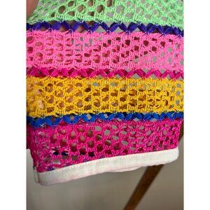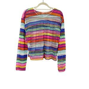 Retro Mesh Rainbow Crop Top XL Colorful Rave Disco Playful Funky Y2K 80s Chic