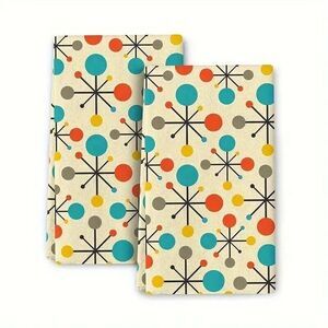 Retro Mid-Century Dots Modern Atomic Kitchen Towels 2pc Vintage Vibe Microfiber