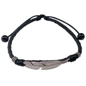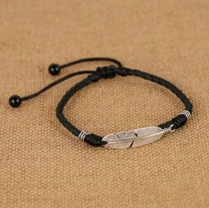 Retro Minimalist Adjustable Feather & Alloy Drawstring Anklet or bracele Unisex black silver color