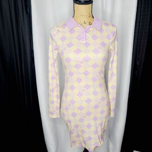 Retro Mod 60s Style Pastel Purple Diamond Print Collared Go-go Girls Dress