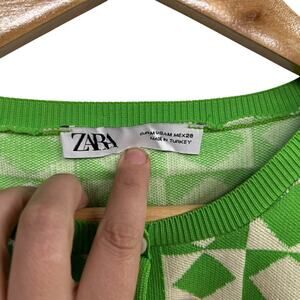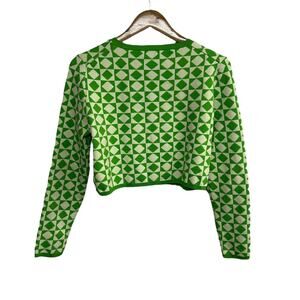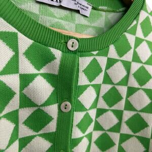 Retro Mod Crop Cardigan Zara Green Geometric Y2K Revival Size M