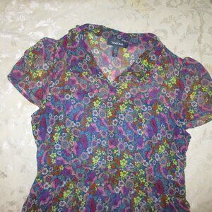 Only worn a time or two! No flaws as far as I can tell. Length from shoulder to hem: 37 inches, waist: 16 inches across lying flat but does have back elastic for added stretch, chest: 20 inches across lying flat - Size Large