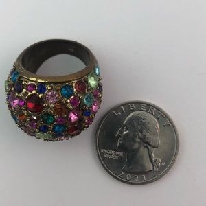 Rainbow of gemstones on a chunky round/globe Goldtone ring