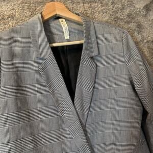 Vintage Mural Black White Houndstooth Double Breasted Blazer Jacket Longline Size M Medium Mural Art Has No Boundaries
