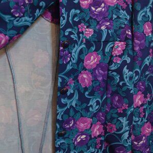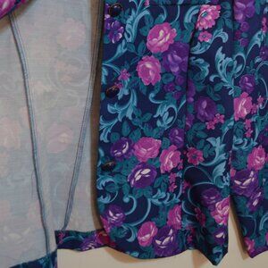 Retro NEW YORK - Made in U.S.A. Floral Prints Padded Shoulders Buttons Jacket 14