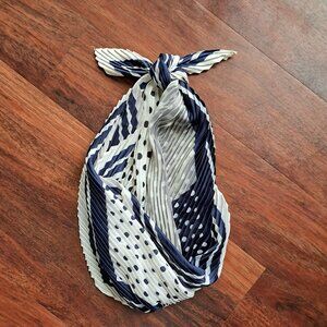 ❤️Retro Navy & White Polka Dot Pleated Scarf