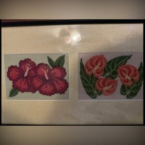 Retro Needlepoint Tapestries Floral Designs Hand Made Flowers framed JoAnn