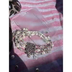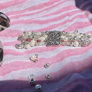 New in pack. I went to stretch test this item and as you see it did not pass. Stretch bracelets are known to become brittle with age. This one is broken but I am selling it as Crafting beads. Someone super handy can restring them or create your own creations. Super cute beads not sure what they are made of but pretty none the less. Again bracelet is completely BROKEN and the beads card and what's left of the bracelet will be in clear pack. Mostly loose beads.