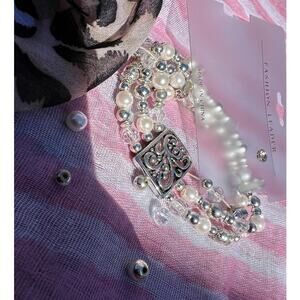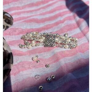 Retro New in Pack Broken Stretch bracelet with Crystal and Silver Tone Beads