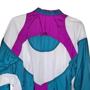Retro Nike Track Windbreaker White/Purple/Green Vintage Blk/Wht Tag Size Med 10-12 Womens