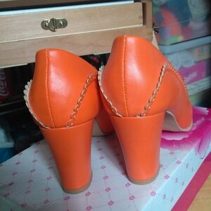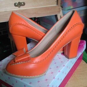 Super cute retro orange chunky heels. No name Amazon brand. Size 39/snug size 8. Like new condition. Tried on only.
